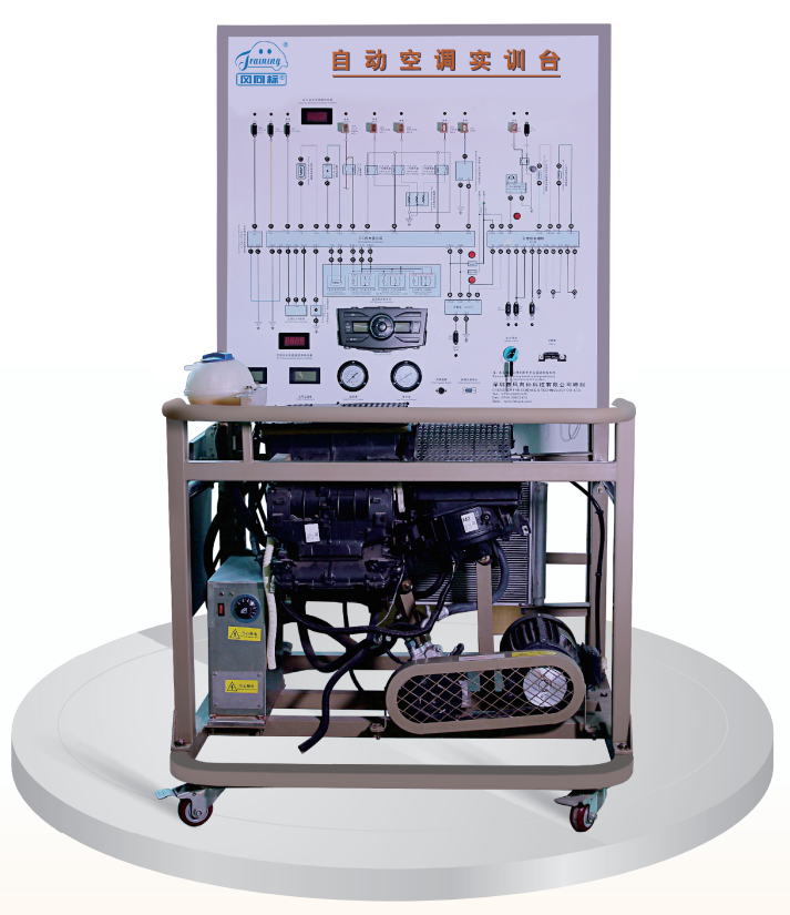 ·由三相電機做為動力源,帶動空調(diào)壓縮機工作。操作空調(diào)控制面板,可真實演示挖掘機自動空調(diào)系統(tǒng)的工作過程以及工作原理。